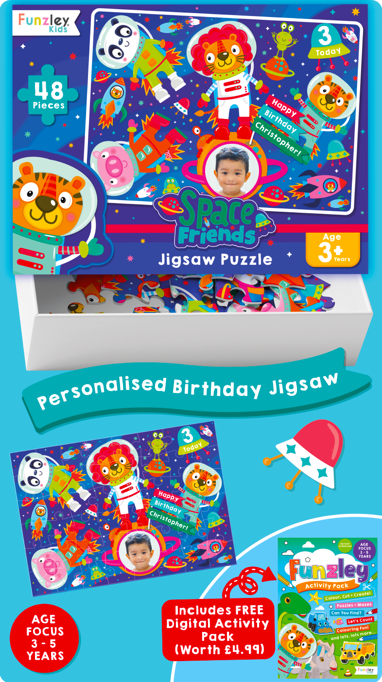 Funzley® is an independent children’s gift and book publisher where every puzzle, story, character, and illustration is imagined and created in-house. We design personalised birthday jigsaw puzzles and books for children aged 2 to 11, alongside thoughtful, screen-free gifts that celebrate fun, excitement, and imagination. Best known for our bold, colourful designs and keepsake-worthy creations, we make birthdays feel magical — giving families moments to treasure… Delivering birthday smiles!